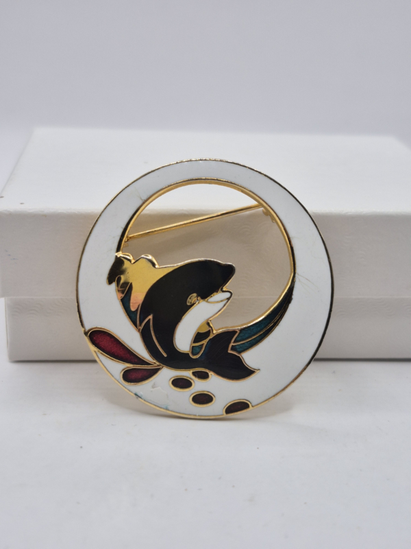 Emaille broche met Orca