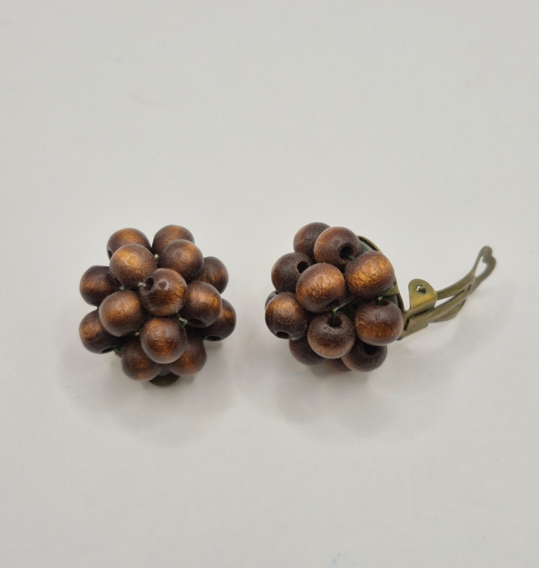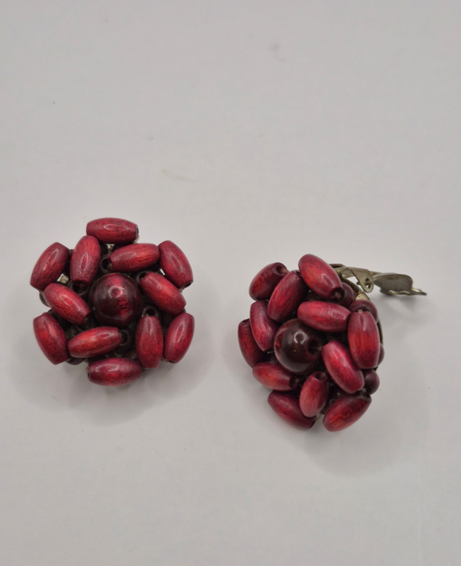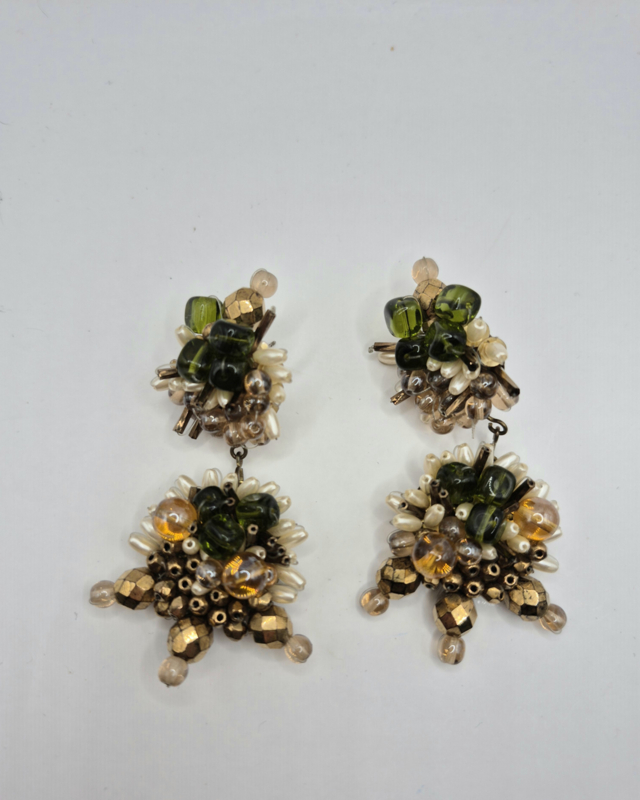 Uitbundige vintage oorstekersMateriaal: diverse glazen en kunststof kraaltjes, kunstparels op koper