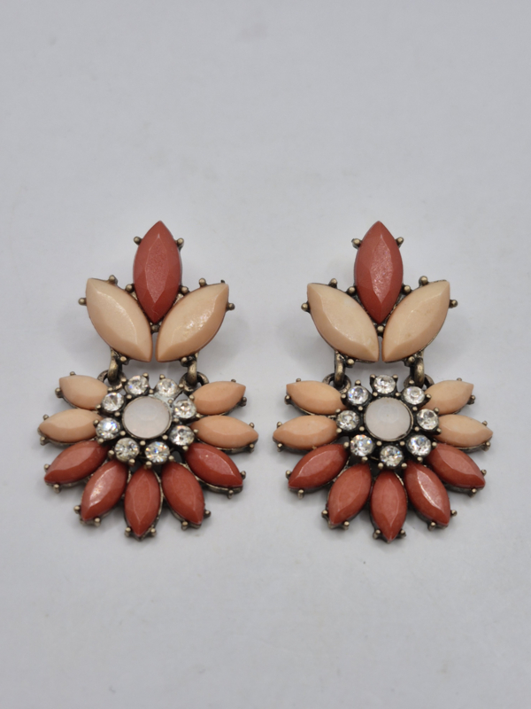 Bloem oorstekersMateriaal: kunststof en strassteentjes in koperkleurige zetting