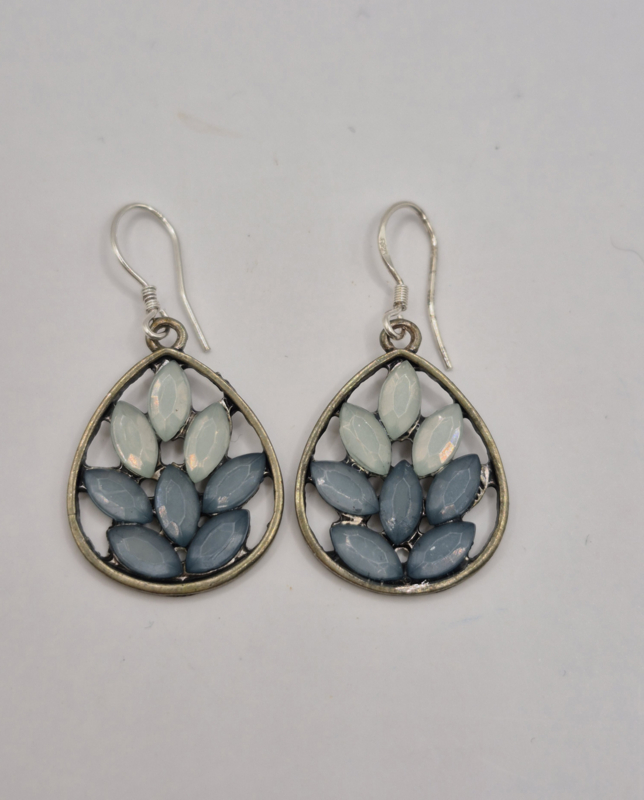 Cloisonne oorbellenMateriaal: goudkleurig metaal, grijs-blauw cloisonne